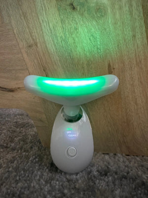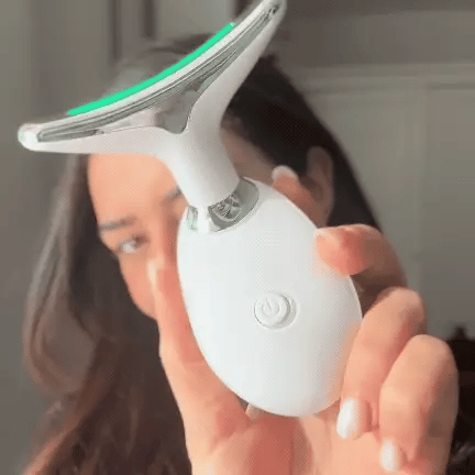 Ringiovanisci il viso e il collo con un massaggio rilassante e luce LED tricolore.